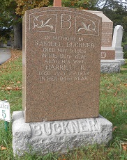 Samuel Buckner, of Coxwell Avenue, was buried on 9 November 1926, aged 86 years. Harriet Buckner, of 204 Booth Avenue, was buried on 1 August 1932, aged 93 years, They were buried in Section 1, Range 5, Plot 1a, in the churchyard at St John the Baptist Anglican Church. |